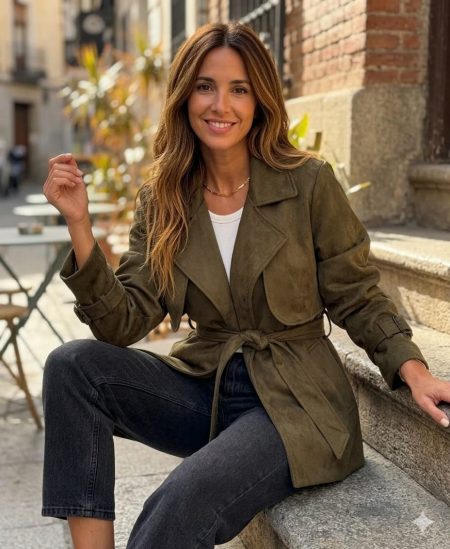 trench gamuza » Niclah» marra ajustable, desmontable, caida total