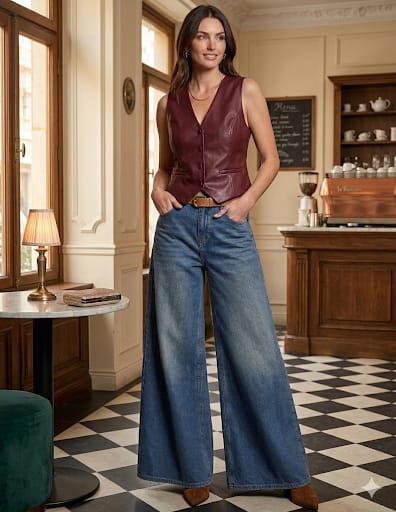 Chaleco italiano » Gia » tejido , estampado sutil brillo, caida total