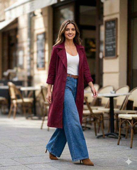 Abrigo » Mora» tejido denso, elasticado, caida total