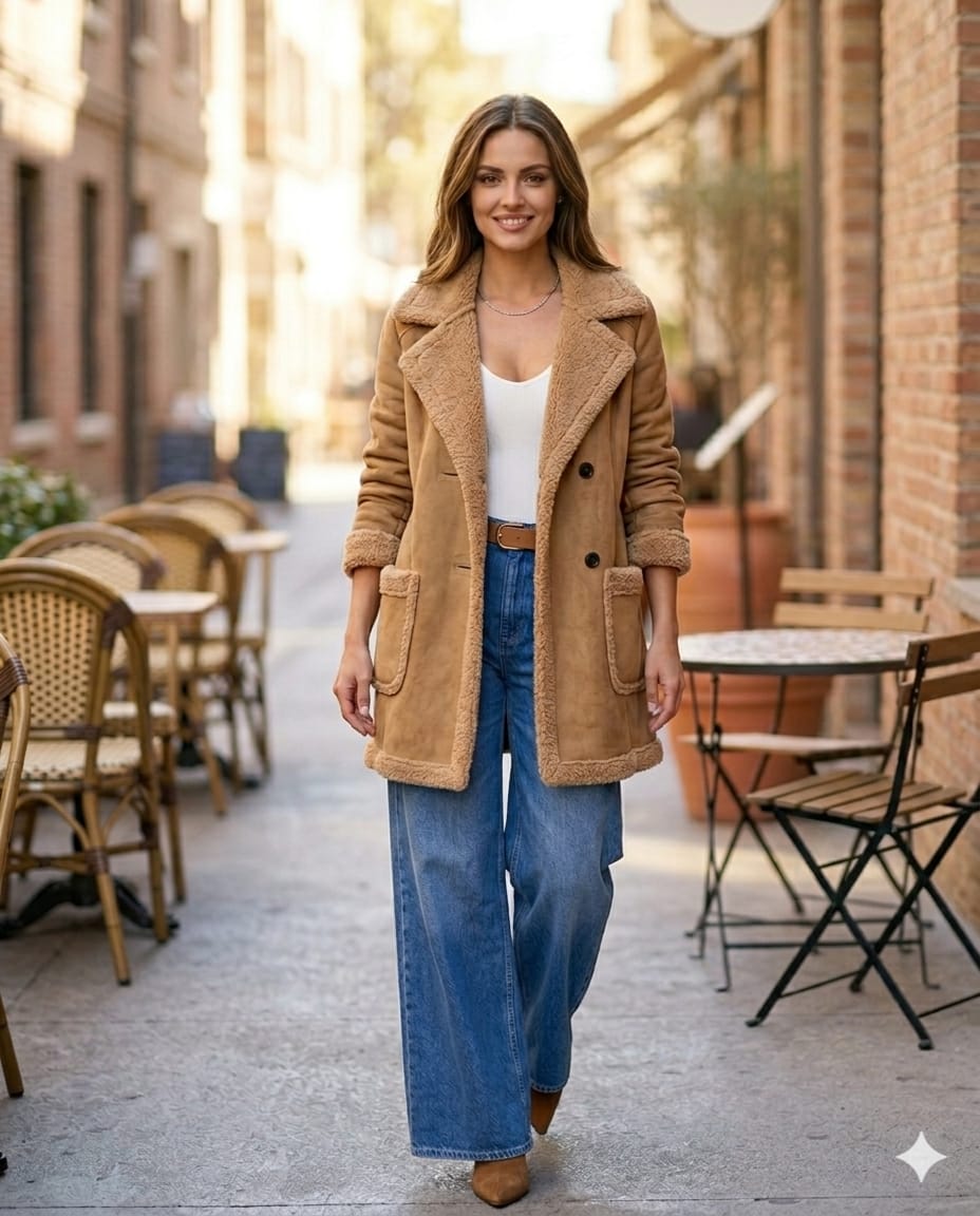 Abrigo Gamulan » Kate» Gamuza, chiporro interno, bolsillos frontales, largo ideal