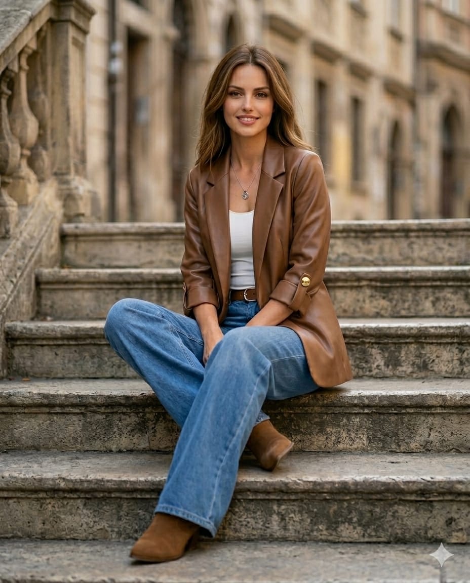 Blazer » Joe» ecocuero, forro interior, solapa, caida total