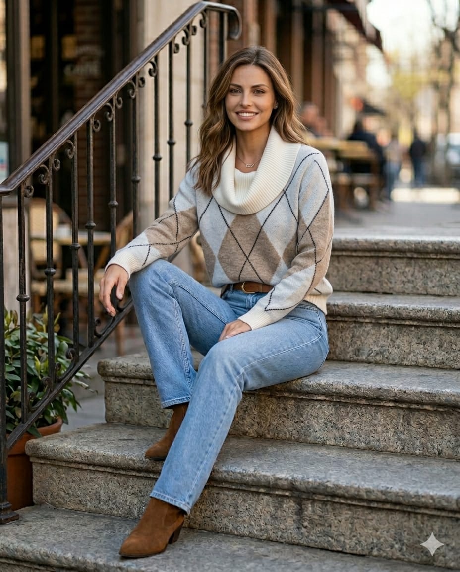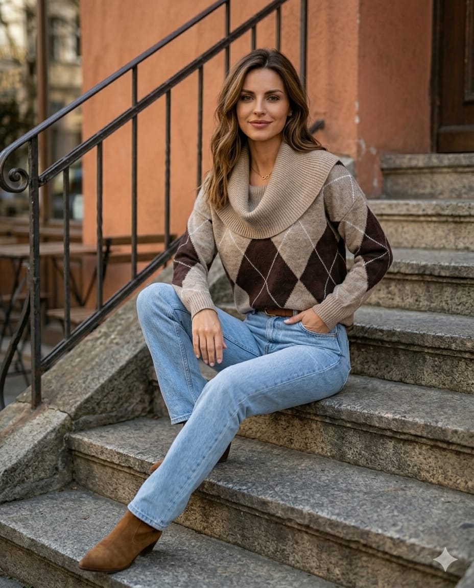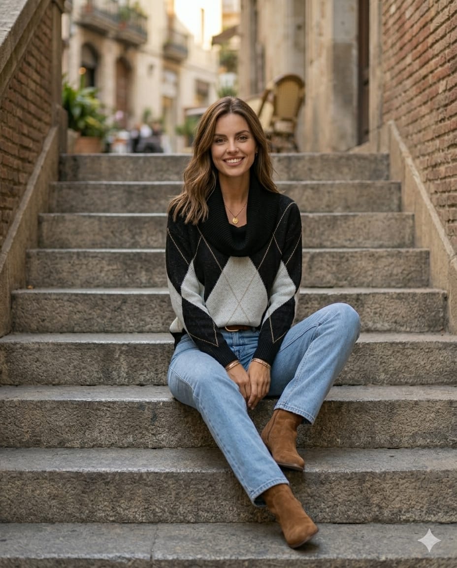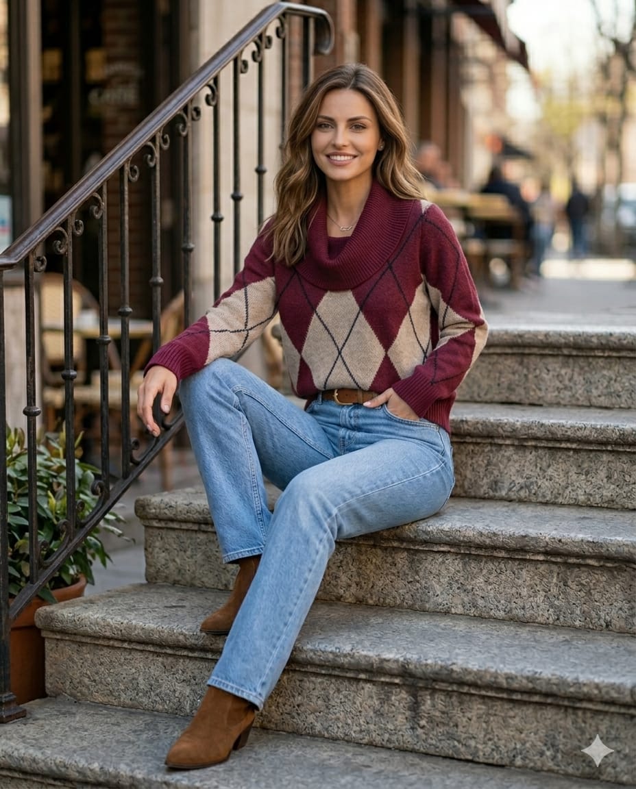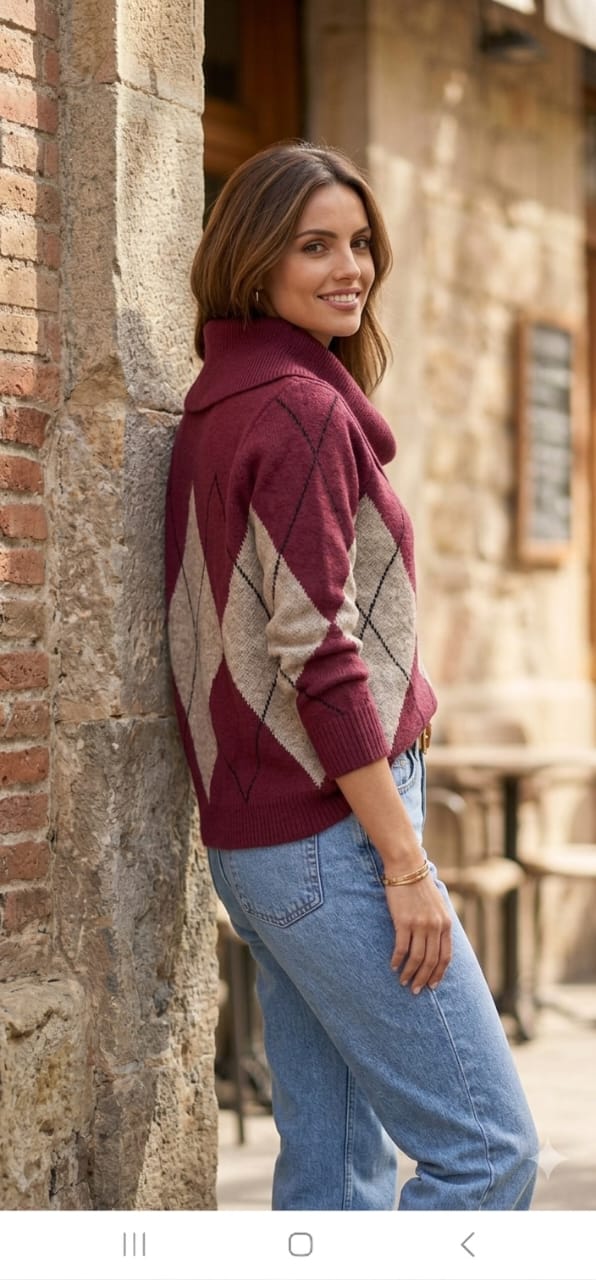 Chaleco » Rinna» cuello bote, tejido suave, diseño rombo, caida total !