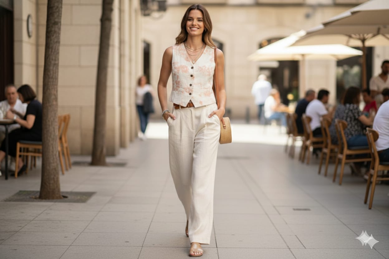 Gilette » Alonsa» en lino, botones frontales, liviano, bolsillos frontales, perfecto para esta temporada
