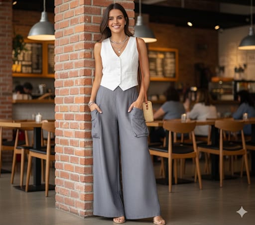 Pantalon palazzo , tencel bolsillos, pretina elasticada, livianos, calce total